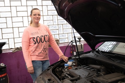 Klischee könnte man meinen, doch für die 37-Jährige Kfz-Meisterin hat diese Designidee neben dem persönlichen Geschmack auch einen ganz praktischen Nutzen, denn sie würde überwiegend nette Kundschaft anziehen. Denn bis heute ist es so, dass man als Frau in dieser Branche mit Vorurteilen gerade von Männern zu kämpfen hat. Das war schon in ihrer Ausbildung so: „Im ersten Lehrjahr waren wir drei Frauen in einer Klasse von 25 Schülern. Später war ich dann ganz allein. Für mich war die Ausbildung sehr schwierig, weil ich erst durch die Jungs gemobbt wurde, sodass ich auch überlegt habe abzubrechen. Aber ab Ende des zweiten Lehrjahres haben die dann auch gemerkt, dass das gar nicht dumm ist, was ich sage. Man muss sich erst beweisen und gegen die Vorurteile arbeiten.“, schaut sie zurück. Deshalb rät sie allen jungen Frauen, die sich in sogenannten „Männerberufen“ etablieren möchten, selbstbewusst zu sein und zu lernen, sich durchzusetzen. Ihre eigene Beharrlichkeit zahlte sich aus, so schloss sie ihre Ausbildung als Siebtbeste deutschlandweit ab. Es folgte die Meisterausbildung und schließlich noch eine Ausbildung zur KFZ-Sachverständigerin. Durch diese kam sie dann auch aus Schwaben in den Norden und arbeitete erst beim TÜV Nord in Hamburg und später als Unfallschadensmanagerin in einem KFZ-Betrieb in Delmenhorst. Ihr Interesse für Autos wurde durch ihren Vater geweckt, welcher schon immer in der heimischen Scheune an Autos schraubte und beispielsweise normale PKW in Pick-Ups umwandelte. Das geschah auch mit ihrem ersten Auto, einem BMW - knallpink-metallic versteht sich. Seit 2020 hat Ramona Hübner nun ihre eigene Werkstatt in Bookholzberg, in der sie gemeinsam mit ihrem Ehemann arbeitet, für welchen sie schließlich in Norddeutschland blieb. Und ihr pinkes Werbeschild strahlt aus, denn ihre Kunden sind oft Frauen, die schon mal Sorgen haben, in anderen Werkstätten nicht ernst genommen werden. Und die Männer? Die lernen auch schnell, wer die Chefin ist. Mit der Selbstständigkeit hat sich vieles für Ramona Hübner verändert. Ein großer Teil der aktiven Werkstattarbeit weicht den bürokratischen Aufgaben, dazu kommt, dass sie im letzten Jahr noch eine zweite Werkstatt in Ganderkesee eröffnet hat und in der sie auch die immer größeren Fahrzeuge und Wohnmobile aufnehmen kann. „Ich kümmere mich nun um beide Filialen. Gerade jetzt in der Urlaubszeit fällt da wahnsinnig viel an. Ein paar kleine Aufgaben in der Werkstatt mache ich noch, aber vier Stunden Zeit für einen Zahnriemenwechsel hätte ich gerade nicht, da muss man mit dem Kopf voll dabei sein und kann nicht zwischendrin auch das Telefon beantworten.“, erzählt sie. Ein großes Problem auch in ihrer Branche ist der Personalmangel, trotzdem hofft sie, in naher Zukunft mehr Mitarbeitende zu finden, um in den beiden Läden den Service zu bieten, den ihre Kunden und Kundinnen verdienen und den sie sich selbst als Standard setzt. Selbstverständlich ist ihre Werkstatt auch ein Ausbildungsbetrieb, wo neben einer Auszubildenden im dritten Lehrjahr in diesem Jahr auch zwei neue Azubis bei ihr anfangen werden. Es ist viel. was Ramona Hübner unter einen Hut bekommen muss. Während sie früher gern im Garten arbeitete oder mit dem Wohnmobil unterwegs war, bleibt nun nur wenig Zeit, um den Kopf freizubekommen, denn jüngst kam noch eine ganz neue Aufgabe auf sie zu. Seit neun Monaten ist ihr Sohn auf der Welt, der nun ähnlich wie sie zwischen Öl und Werkzeug aufwachsen wird. „Nun möchte man auch etwas ganz anderes erleben, vielleicht mal zwei Wochen die Füße hochlegen und meinem Sohn zuschauen, wie er sich entwickelt. Da muss ich noch einen richtigen Weg für uns finden.“, erklärt sie. Und das wird diese taffe Frau mit Sicherheit schaffen.