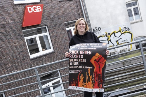 Über 8000 Gäste hörten sich im letzten Jahr Vorträge und Musikprogramm an. Verantwortlich für die Durchführung ist Marieke Brandt vom DGB mit einem engagierten Team Freiwilliger. Auf die Aussage eines Friedrich Merz, der das Engagement der Bürger*innen gegen rechts diskreditierte und Vereine und Organisationen, die ebendies täten, in Frage stellte, reagiert sie mit Ehrgeiz: „Das hat mir nur Kraft gegeben, noch mehr zu machen. Wir wollen jetzt richtig laut sein und erst recht die Menschen mobilisieren.“, erklärt sie. Schon immer arbeitet der DGB mit vielen der Organisationen zusammen, die von der „Kleinen Anfrage“ betroffen waren und die nun das Gefühl haben, nicht mehr in der Zivilgesellschaft willkommen zu sein. So kommt es der Jugendbildungsreferentin des DGB ganz recht, dass die Stadt die Veranstaltung schon im letzten Jahr auf den Schlossplatz legte, da der Rathausmarkt 2023 aus allen Nähten geplatzt ist - auch, wenn dies mehr organisatorischen Aufwand bedeutet. An der Planung sind regelmäßig 5-6 Freiwillige beteiligt, beim Auf- und Abbau dann um die 25. Doch es sind auch seit Jahren die gleichen Gesichter. „Schön wäre es, wenn auch das Interesse an der DGB-Jugend wieder mehr wachsen würde. Gewerkschaften haben es super schwer, Nachwuchs zu finden.“, erzählt sie. Die Vorfreude auf das kommende Rock gegen Rechts trübt das aber nicht. Neben den Auftritten des Oldenburger Kneipenchors, der Emder Band Grand Hotel Abgrund (Synthunk), der Bremer Band Von Grambusch (Indie) sowie Anchors & Hearts (Metalcore) aus Bremervörde, wird es Vorträge vom SchwuRef des Asta und den Gewerkschaften IG Metall und Bau geben. Der Eintritt bleibt, wie in jedem Jahr, kostenlos, um Kultur für jede*n erlebbar zu machen. Soetwas kann nur funktionieren, wenn alle Akteure am gleichen Strang ziehen, Freiwillige ihre Freizeit investieren und Künstler*innen mit den Gagen etwas entgegen kommen - am Ende ist es alles für die gute Sache und Oldenburger*in soll die Chance bekommen, dabei zu sein und sich laut zu machen gegen Ausgrenzung, Diskriminierung und den stetig wachsenden Rechtsruck. Dennoch würde sich Marieke Brandt freuen, wenn die Gastronomen, die vor Ort Gesicht und Stellung zeigen, etwas unterstützt werden. Getränke gibt es von Karins und der Ule und einen Foodtruck von Ol’s Brauhaus.