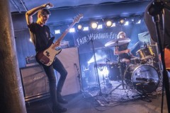 Das zweitägige Programm war straff organisiert: 30 Minuten pro Band, um eine möglichst flache Hierarchie im Line-Up zu gewährleisten. Ein gut nachvollziehbarer, aber stellenweise auch bedauernswerter Schritt, denn die Künstler*innen wurden so gut ausgewählt, dass man Vielen gern länger zugehört hätte. Man musste als Gast flott auf den Beinen sein, um ja nichts zu verpassen, denn Pausen gab es im Timetable nicht. Deutlich zu spüren beim Fair Weather Fest war, dass es eine Veranstaltung von Musikliebhabern fernab von kommerziellen Gedanken ist – Clubs und Musik, mehr nicht. Keine überteuerten Essenstände, schließlich kann man sich im Viertel ja bestens selbst versorgen, oder Getränke, keine fragwürdigen Sponsoren oder unnütze Plastikwerbemittel. Stattdessen das gemeinsame Feiern einer DIYSubkultur, wie sie viele Bands und Gäste schon lange verloren geglaubt hatten. Die 26 Bands reizten das Spektrum der genannten Genres in alle Richtungen aus. Der Freitag startete im Skate-Shop Titus mit Garagenpunk von den Bremern Empty Bones, machte Ausflüge in den Power Pop von Baby Of The Bunch, wurde richtig Emo mit den Leipzigern von Fume Tea Heather nur um den Gästen dann Hardcore Punk von The Pill um die Ohren zu feuern – und so ging es immer weiter bis zum großen Finale mit Berliner Punk von Smile and Burn. Mal laut, mal leise. Der Freitag punktete außerdem damit, dass kaum eine Band ohne Flinta*Person auf den Bühnen zu finden war. Der Samstag startete ganz gemächlich im Plattenladen Black Plastic, wo The Deadnotes und Travels & Trunks ein Akustikset spielten, bevor dann in der Lila Eule die Verstärker von den schwedischen Mundane angeworfen wurden. Nachmittags dann eines der Highlights für viele: die Veranstalter Phantom Bay. Das Lagerhaus ist voll. Die Stimmung ausgelassen. Auf und vor der Bühne strahlende Gesichter und am Ende des Sets die Ankündigung: Das Fair Weather Fest geht am 5.- 6. Juni 2026 in die zweite Runde. Karten können bereits auf Tixforgigs gekauft werden, um den Veranstaltenden hoffentlich etwas Planungssicherheit für das nächste Jahr zu geben. Auf diese gute Nachricht folgen noch ein paar musikalische Highlights: Emperor X, akustisch, politisch, talentiert in der Lila Eule, die Deadnotes nun endlich auch mit Verstärker im Lagerhaus und Shoreline aus Münster, die das Festival mit einem wahnsinnig energiegeladenen Set beenden. Was bleibt? 400 zufriedene Gäste und die Vorfreude auf 2026.