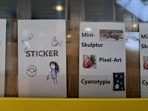 Was hat der denn hier zu suchen? Und dann noch in einladenden Farben, das gibts doch nicht! Warte Mal, ich lese: Kinder Kunst Automat.
