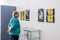 Im Mai machte sich dann das Stadtmuseum öffentlich auf die Suche nach Objekten, die in Verbindung mit der Oldenburger Glashütte stehen. Seien es nun gefertigte Objekte, Fotos oder Geschichten. Die Reaktionen aus der Bevölkerung kamen schnell und überraschend, wie Kuratorin Lemya Demirkapi berichtet, als sie durch die Ausstellung führt. Besonders stolz ist sie auf die originalen Glasmacherpfeiffen, welche nun die Wände des CoWork Space zieren. Dass der Bezug der Oldenburger*innen auch noch so lange nach der Schließung der Glashütte sein würde, hatte die wissenschaftliche Volontärin des Stadtmuseums nicht erwartet. Nach dem öffentlichen Aufruf kamen viele Reaktionen so schnell, dass Demirkapi kaum Zeit blieb, sich zuerst mit der vorhandenen Sammlung des Museums zu dem Thema, das ihr bis dahin gänzlich fremd war, zu beschäftigen. Besonders spannend dabei sind sicherlich die Berichte der Menschen, die selbst in der Glashütte arbeiteten oder dort Angehörige hatten. Oder Objekte, wie skurril verformte Flaschen, welche nicht mehr für die eigentliche Produktion geeignet waren. An diesen lebten sich die Arbeiter der Glashütte dann abseits strenger Vorgaben zur Massenproduktion kreativ aus. Doch nicht nur das Sammeln stellte eine große Aufgabe dar, sondern auch die Arbeit mit den gegebenen Räumen des CoWorking Space, welche früher vermutlich ein großes Lager waren. Diese sind natürlich nicht der typische weiße Würfel, sondern eben sehr belebte Büroräume. Doch die Arbeit darin habe sich sich sehr angenehm gestaltet und brachte sogar die ein oder andere unerwartete Kooperation mit sich. So kümmerte sich das ansässige Lichtwerk spontan um die Ausstellungsschilder, welche einem Foto des alten Gebäudetrakts nachempfunden wurden. Bis zum September 2022 soll die Ausstellung mindestens in der Emsstraße 18 aufgebaut bleiben, ob sie im Anschluss teilweise oder komplett in die neuen Räume des Stadtmuseums ziehen wird, ist noch ungewiss. Bis dahin haben Interessierte die Möglichkeit, sich dieses Stück Oldenburger Geschichte gratis zu den jeweiligen Öffnungszeiten des CoWorking Space anzuschauen und sich vielleicht selbst noch mit der ein oder anderen Geschichte der Glashütte zu beteiligen.