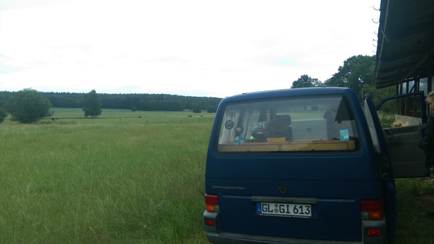 Aber bitte weiterlesen, auch wenn kein eigener Bulli vorm Haus parat zum Einsteigen ist! Denn wovon hier berichtet werden soll ist ein Konzept das sich WWOOF nennt. „World Wide Opportunities on Organic Farms“ bedeutet so viel wie „Weltweite Möglichkeiten auf organischen (Bauern-)Höfen“ und ist eine super Chance für all diejenigen, die sich im Urlaub auch einfach mal Abwechslung vom Alltag wünschen. Eigentlich ist es ganz einfach: Freiwillige Urlauber arbeiten für Kost und Logie auf einem Hof ihrer Wahl. Dazu einfach auf wwoof.de registrieren, Beiträge für ein Jahr kosten 25 Euro, und lossuchen. Höfe gibt es in ganz Deutschland, manchmal sogar direkt vor der eigenen Haustür, also kann man ganz frei wählen wie weit man sich aufmachen möchte. Selbstverständlich gibt es dieses Angebot auch in vielen anderen Ländern, aber das gestaltet sich auf Grund der aktuellen Lage natürlich unnötig kompliziert, wenn es auch hier in Niedersachsen die verschiedensten Angebote gibt. Die Website informiert über die wichtigsten Eckdaten zu den Höfen, ihren menschlichen und tierischen Bewohnern und teilweise auch schon zu den aktuell anstehenden Arbeiten, bei denen die häufig noch unerfahrenen Besucher tatkräftig unterstützen können. Es gibt individuelle Regeln für die Dauer der Arbeitszeiten innerhalb einer Woche und teilweise auch Beschränkungen der Hofbesitzer zur Dauer des jeweiligen Aufenthaltes. Persönlich bin ich auf diese Weise in Deutschland schon ganz schön herumgekommen. Ob in Hessen im Herbst bei der Weinlese (und Verkostung) zu helfen in Butjadingen auf einem feministischen Bauernhof Ponyreiten für Touristen zu veranstalten oder, wie gerade in diesem Moment, bei einem SoLaWi-Hof (Solidarische Landwirtschaft) in Brandenburg zu sitzen und nach einer langen Zaunbau-Aktion auf das Abendessen zu warten, dass die Mit-Wwoofer gerade frisch zubereiten – ein Urlaubsgefühl und die ersehnte Entspannung sind ebenso erreicht worden, wie meine Neugier täglich befriedigt wurde! Um zwei meiner persönlichen Erfahrungen wird es sich nun drehen, damit vielleicht ein etwas lebendigeres Bild davon entstehen kann, wie der Wwoof-Alltag so aussieht und sich die/der ein oder andere vielleicht auch mal auf dem Feld oder im Kuhstall ausprobiert – denn von dieser Abmachung, die ganz ohne Geld funktioniert, profitieren alle Seiten.