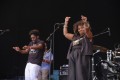 [font=Bembo]Zugegeben, es ist nicht so richtig sommerlich an diesem Tag in Oldenburg, der Himmel ist grau, es nieselt immer mal wieder und der Schlossplatz füllt sich nur langsam. So beginnt das musikalische Programm eine Viertelstunde später als geplant mit dem israelischen Jazz-Gitarristen und Songschreiber Tal Arditi, der allein mit seiner Gitarre und ein paar Effektgeräten die Bühne für sich einnimmt. Arditi lebt mittlerweile in Berlin und verfolgt von dort aus seine Karriere. Schnell füllt es sich vor der Bühne, kein Wunder bei so viel Spielfreude und Charisma. Da hat sich sogar der Nieselregen verzogen. Nach einer halben Stunde ist allerdings schon Schluss und Andreas Holtz, der Programmleiter der Kulturetage, kommt auf die Bühne, um die nächste Band anzukündigen. Vom politisch belasteten Israel geht es nun in die ebenso katastrophalen USA. Holtz lässt es sich dabei nicht nehmen, mit klaren Worten auch auf die beängstigenden politischen Entwicklungen bei uns hinzuweisen. Mourning [A] Blckstar versprechen einen etwas schwereren Sound. Eine trockene Fusion aus Jazz, Soul, Rap und Rockmusik mit ernsten, politischen Themen. Die Band spielt ganz hervorragend, aber es ist keine Partymusik für einen lauen Sommerabend. Man muss sich auf das Dargebotene einlassen können. Dazu sind längst nicht alle Gäste bereit, sodass sich der Platz nach und nach ziemlich leert. Wer bleibt, erlebt dafür ein Konzert voller Energie und auch Hoffnung in diesen schwierigen Zeiten. Mit den Ansagen hält sich die Gruppe kurz, um so viele Songs wie möglich spielen zu können. Diese klingen, trotz der ernsten Themen, stellenweise erstaunlich leichtfüßig. Es geht um Trauer, um Kampf, um Widerstand, um das Patriarchat, die Leiden der schwarzen Community und die furchtbare US-Regierung. Als Gast hätte man vielleicht mehr Wut auf der Bühne erwartet, mehr Einblicke in die aktuelle Lebenswelt der US-Amerikaner in diesen Zeiten und eben mehr Ansagen – doch die Band fasst es prägnant zusammen: „We’re all in this together“ und im Prinzip ist das alles, was gesagt werden muss.[/font][font=Bembo] [/font]