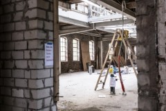 Zuvor war das, seit 2018 vom Kulturbüro der Stadt Oldenburg verwaltete, Gebäude nur in den Sommermonaten nutzbar, denn eine Heizung gab es nicht. Finanziert wird dieses Vorhaben teils durch Förderungen der Beauftragten der Bundesregierung für Kultur und Medien, der KfW, der Niedersächsischen Sparkassenstiftung und der Landessparkasse zu Oldenburg (ca. 1 Mio. Euro), die restlichen Kosten trägt die Stadt. Die Dauer der Umbaumaßnahmen sollten ursprünglich 1,5 Jahre betragen, eine sportliche Schätzung, die nicht eingehalten werden konnte. In die Verzögerung spielen gleich mehrere Faktoren: zu Beginn der Arbeiten wurde in der Halle ein starker Schädlingsbefall festgestellt, dessen Beseitigung viel Zeit in Anspruch nahm. Auch die Lieferung bestimmter Baumaterialien, wie der neuen Fenster, die optisch an den industriellen Stil der Halle angepasst sind, würden derzeit für Verzögerungen sorgen, wie Projektleiter Philipp Oerke erklärte. 2017 wurde die Halle durch eine große Demo der Creative Mass gerettet, statt ein kreativer Freiraum zu bleiben, sollte sie verkauft und zu einem inklusiven italienischen Restaurant umgewandelt werden. Die dafür nötigen Renovierungsarbeiten hätten aber das historische Bild der Halle nicht erhalten können. Der öffentliche Aufschrei zeigte Wirkung, so ging die Halle in die Verwaltung des Kulturbüros über und konnte seitdem niedrigschwellig für Ausstellungen, Vorträge oder andere Projekte genutzt werden. Frühere Nutzer*innen wie der Bau_Werk Verein äußerten den Wunsch, dass der industrielle Charme der Halle, die einst eine Maschinenschlosserei war, erhalten werden solle. Dies scheint bei den Modernisierungsarbeiten gut zu gelingen. Alte Holzbalken liegen offen, eine Fußbodenheizung wurde unter einem neuen, aber dennoch rauen, strapazierfähigen Boden verlegt, die originalen Fenster, die in Richtung Exerzierhalle zeigen, bleiben erhalten und werden im Inneren durch eine zweite Reihe neuer Fenster ergänzt. Die Fenster auf der gegenüberliegenden Seite sind neu, passen sich aber optisch an die Halle an. Die dazugehörige Wand wird gedämmt, während die Wand in Richtung Exerzierhalle ihre freiliegende Ziegeloptik behalten darf. Dazu kommen Solaranlage samt 20KW Batteriespeicher und Wärmepumpe. Durch diese Maßnahmen erreicht die Halle den Energiestandard KFWEG70EE, was bedeutet, dass die Halle nun 56% weniger Primärenergieverbrauch hat, als die KfW es für Denkmäler vorsieht. Dazu kommen außerdem eine kleine Küche sowie neue Sanitäranlagen.